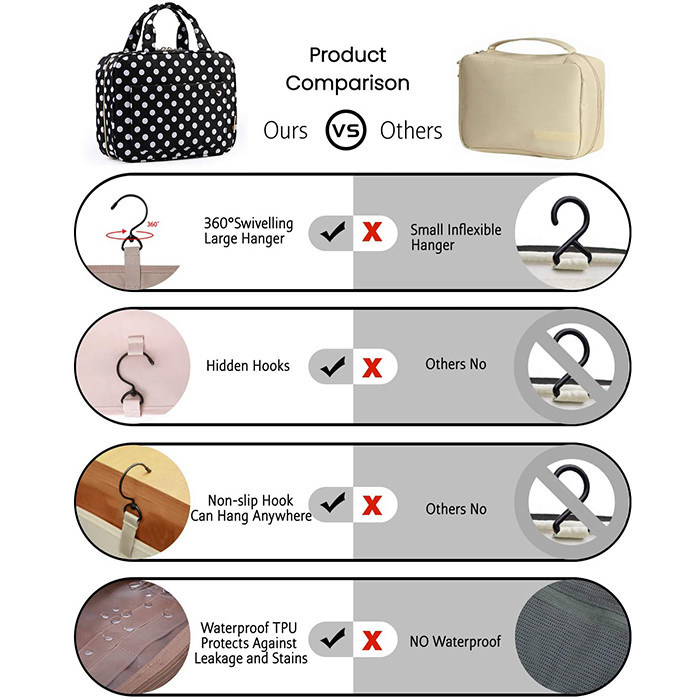 Hoog licht: | Hangende Toiletry Make-upzak,punttoiletry Make-upzak,de Make-uporganisator van de stoffenreis |